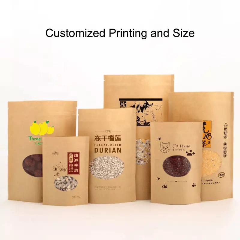 Brown Kraft Paper Stand up Pouch with Zipper and Oval Window